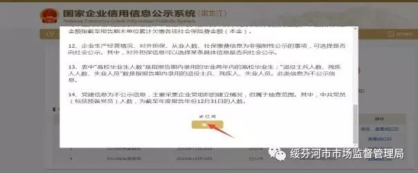 弹出年报须知,阅读后,在下方“已阅”前的小框内“∨”(对勾),再点确认。如果以前存在没有参加年报的年度,先需要将以前年度补报后才可申报本年度的。