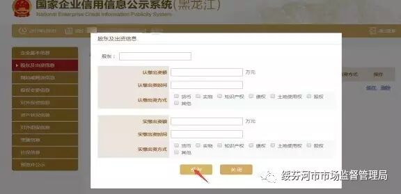 按照公司章程约定的填写股东出资额及出资时间,每一个股东(发起人)的出资信息只需填报一条,股东(发起人)认缴和实缴出资额为截至报告年度12月31日的累计数额;认缴和实缴出资时间为截至报告年度12月31日最后一次认缴和实缴时间,出资方式可以多选。点击“保存”。