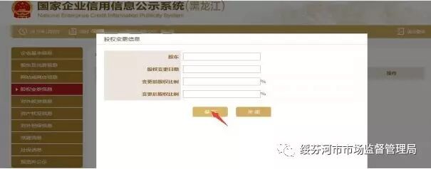 第七步:填写股权变更信息,点击左边的“股权变更信息”,之后再点击“保存”