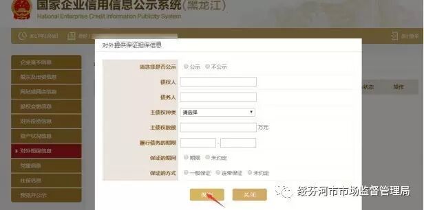 第十步:填写对外担保信息。点击左边的对外担保信息,根据实际情况进行添加之后点击“保存”。